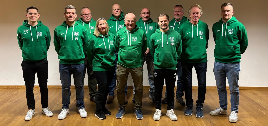 Von links: Leon Wettels (stv. Vorstand Senioren- und Altherren-fußball), Sebastian Engel (Vorstand Senioren- und Altherren-fußball), Michael Stapf-Krick (Vorstand Finanzen und Steuern), Bettina Müller (Vorstand Breitensport), Jörg Wettels (Vorstand Planung und Koordination, zugleich Vorstandssprecher), Ralf Wettels (stv. Vorstand Öffentlichkeitsarbeit), Alfred Hasenauer (Vorstand Infrastruktur), Benedikt Böhning (Vorstand Öffentlichkeitsarbeit), Reiner Mathes (stv. Vorstand Infrastruktur), Edgar Engel (Vorstand Sponsoring und Marketing), Eric Wettels (Vorstand Veranstaltungen), Es fehlen: Max Jung (stv. Vorstand Finanzen und Steuern), Viktor Lidke (Vorstand Juniorenfußball)