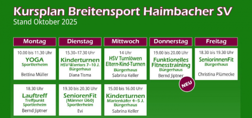 Die Verteilung in Haimbach, Rodges & Besges findet aktuell statt, und auch bei den nächsten Heimspielen der Fußball-Senioren und am Sportfest werden wir das Heft auslegen. Vielen Dank an alle, die mit ihren Beiträgen, Fotos, Anzeigen etc. wieder am Heft mitgewirkt haben! Einen besonderen Dank insbesondere auch an alle Firmen für die Beauftragung einer Werbe-Anzeige!