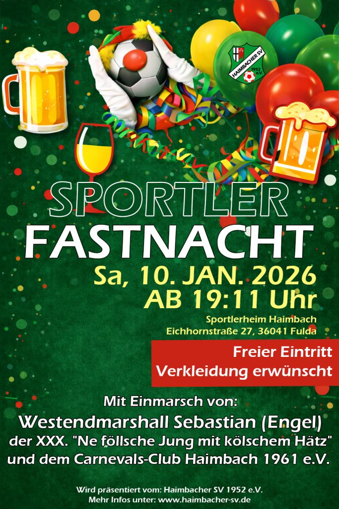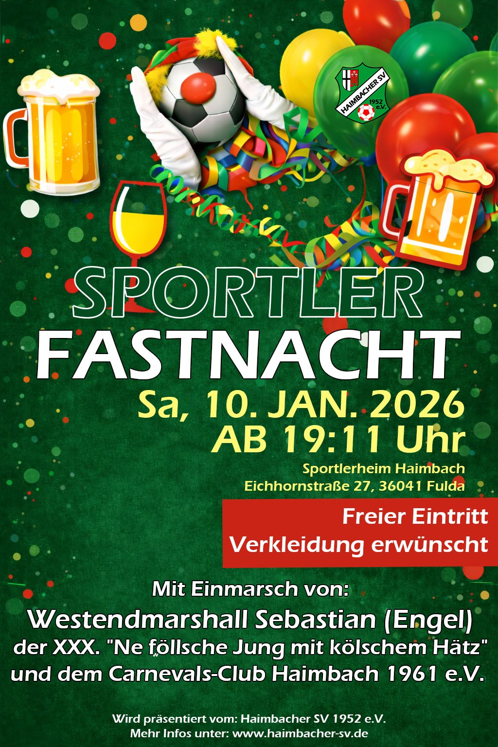 Der Haimbacher SV 1952 e.V. lädt euch herzlich zur Sportlerfastnacht 2026 ein!